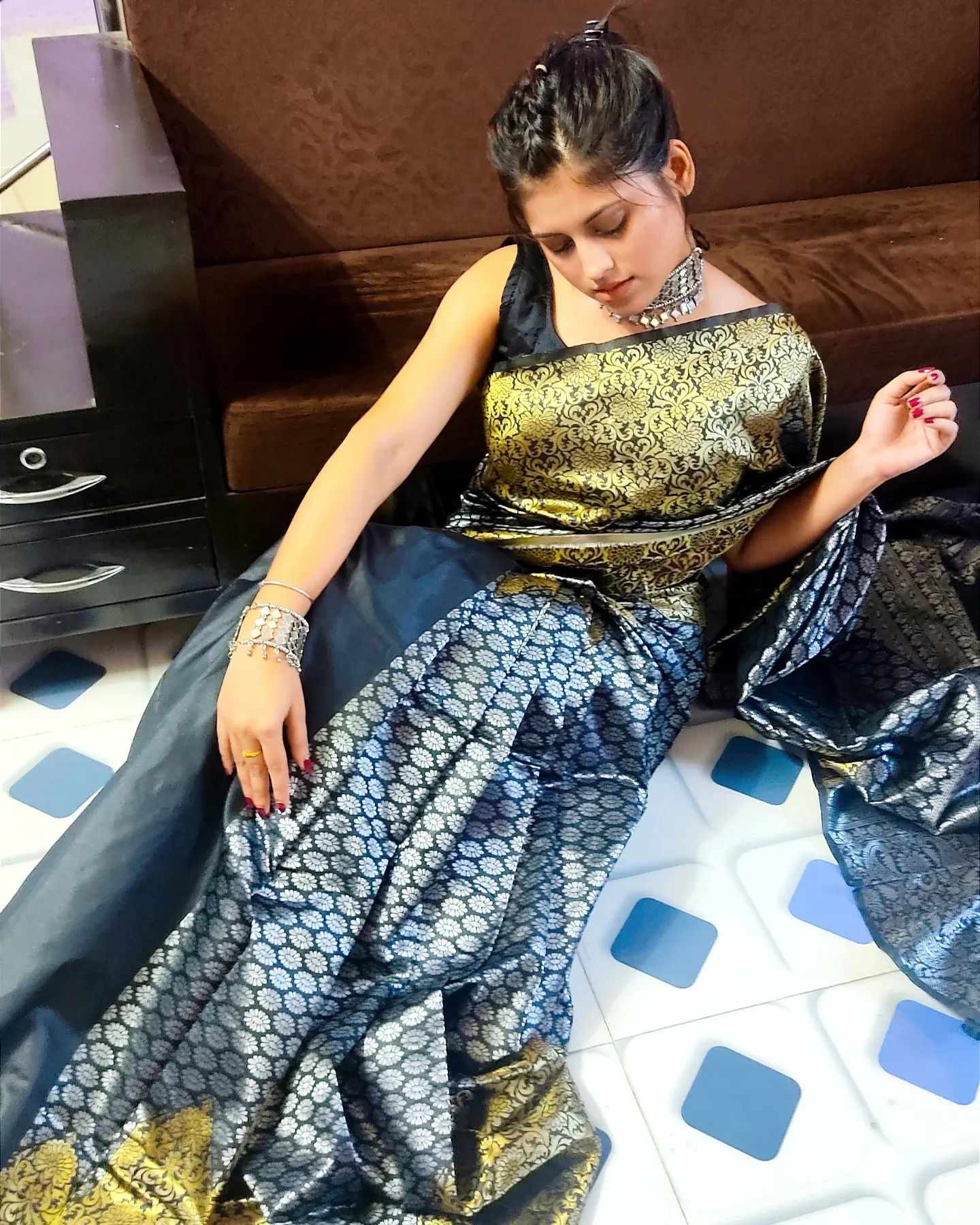 STUNNING BLACK COLOUR SAREE WITH BLOUSE